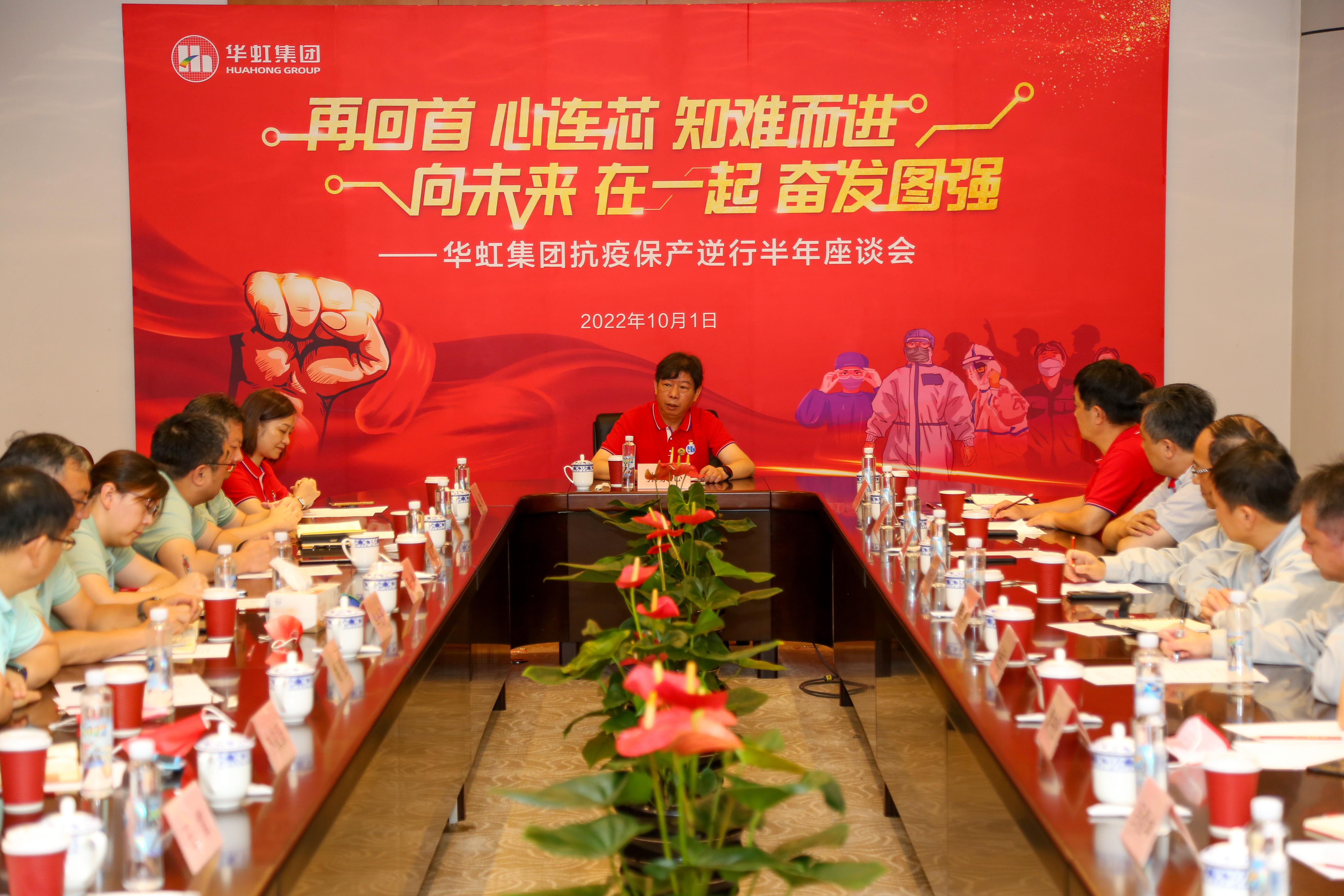 兩大制造平臺抗疫保產逆行半年座談會。上午,在華虹集團發源地——華虹一廠召開“再回首,心連芯,知難而進;向未來,在一起,奮發圖強”兩大制造平臺抗疫保產逆行半年座談會。集團領導及兩大制造平臺的黨政工團負責人、工廠廠長齊聚一堂,深情回顧,凝聚共識,激情展望踔厲未來,進行了充分交流。